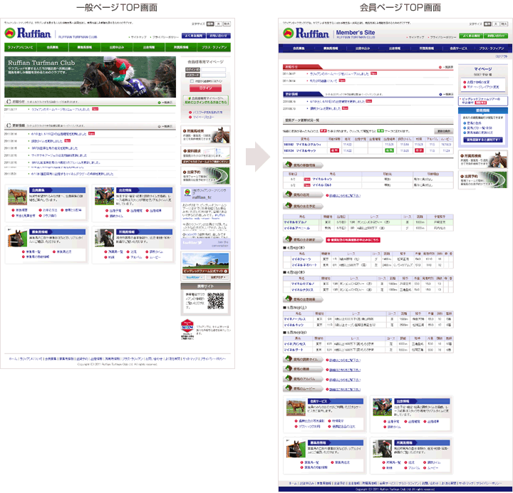 出資馬やお気に入りの馬を登録しておくことで、TOP ページからダイレクトに目的とする馬の情報が閲覧できたり、メールによる情報配信がご利用になれます ( 愛馬情報 )。 また、登録情報の変更機能、口取りやゲストハウス利用の申込みなど、会員の皆様により便利にお使いいただける機能をご提供しております。