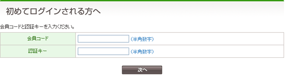 [ 会員コード ] と [ 認証キー ] を入力し [ 次へ ] ボタンを押してください。